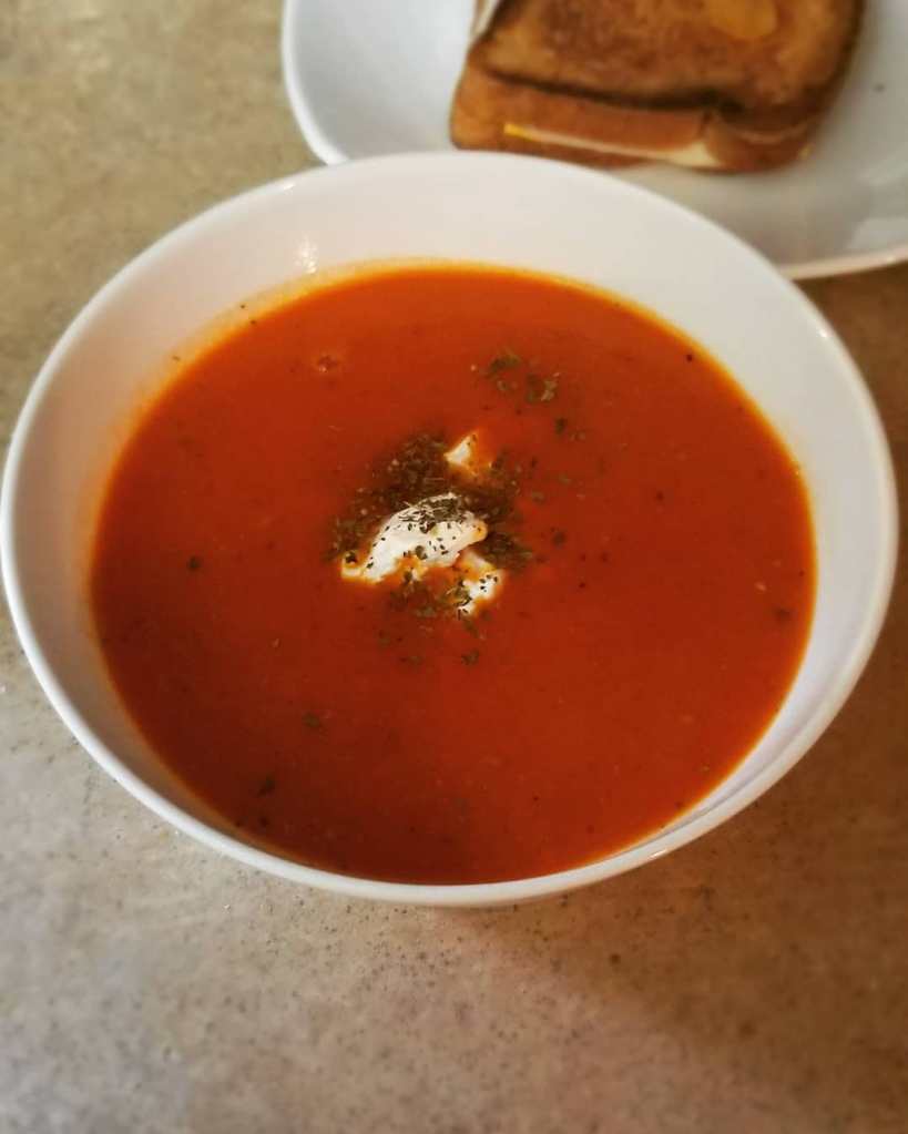 The best way to serve is with a grilled cheese with some sour cream and basil on top! If there is any left over, it is good for up to about 3 days!