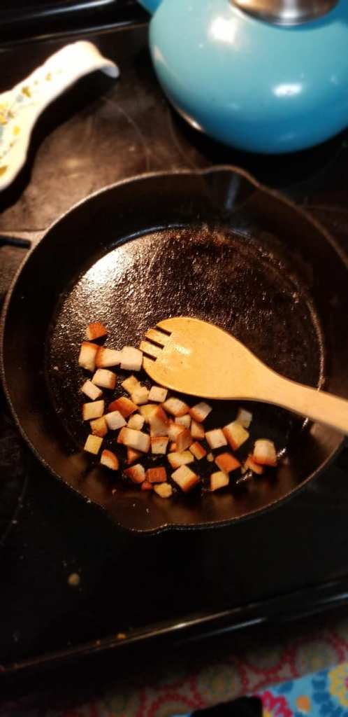 • 1/4 cup ham (diced) (you could use ground sausage or diced bacon too)