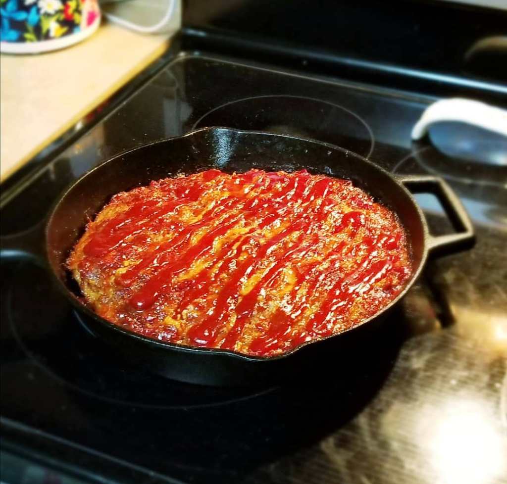 This recipe I am posting today is my traditional meatloaf recipe that I have worked on for years to perfect! After making it in a traditional meatloaf pan (which is an option for you if you do not have a cast iron skillet), I realized my favorite pieces were on the end, where most of it was crispy and delicious! So one day I looked at my cast iron skillet and figured, let’s try it! Turns out it’s the perfect pan to capitalize on the crispiest, juiciest slice of meatloaf!